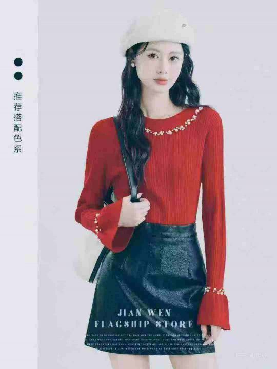 法式名媛风喇叭袖钉珠打底衫,130件,1-4码,独立包装...