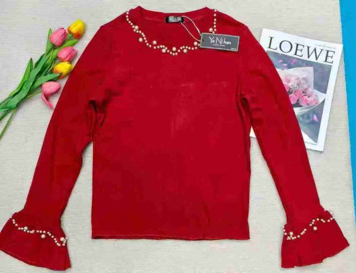 法式名媛风喇叭袖钉珠打底衫,130件,1-4码,独立包装吊牌,全清4.8元