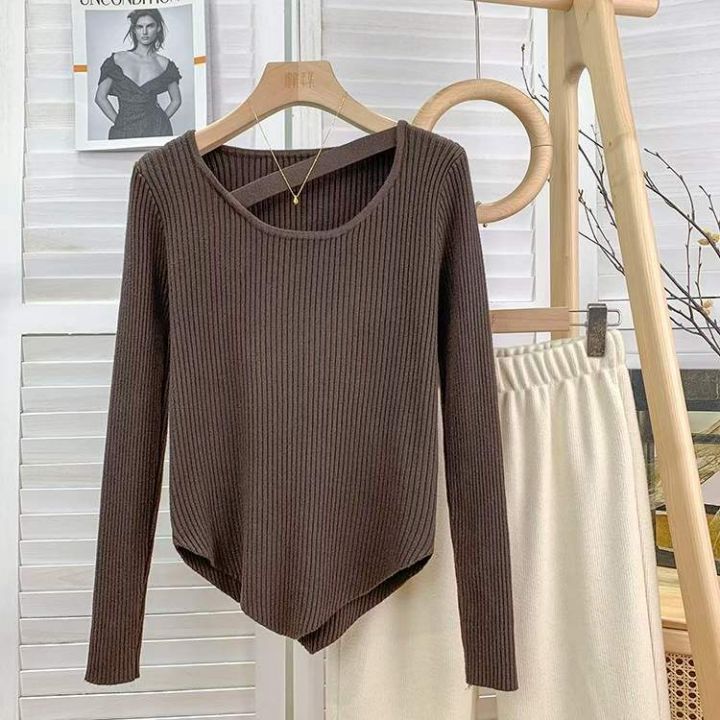 春秋新款网红设计感小众不规则洋气弹力修身显瘦坑条包芯纱套头毛衣,独立包...