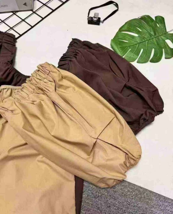 韩系甜美温柔风圆领泡泡袖上衣,整款两色,独立包装 1-2码(S- M)