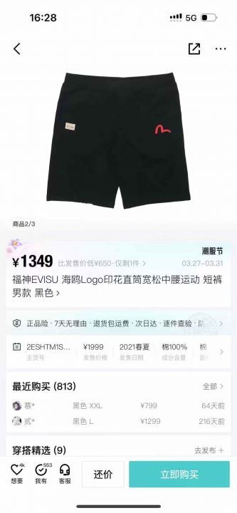 100左右条EVISU福神短裤