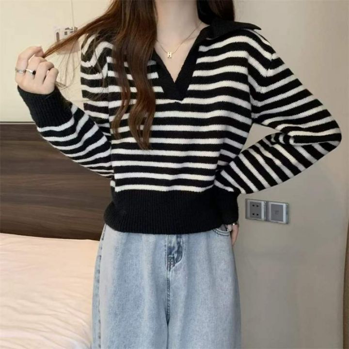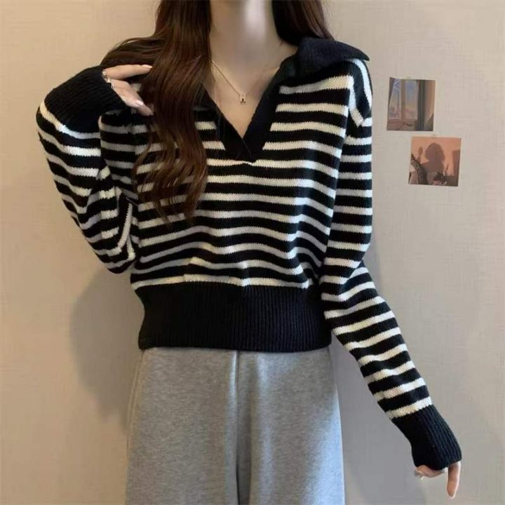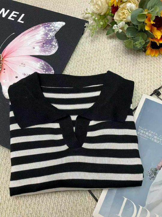 春季新款撞色条纹韩系polo领长袖针织衫,独立包装,均码面料柔软舒适弹力大,140件,全清6.9元超低价秒杀!