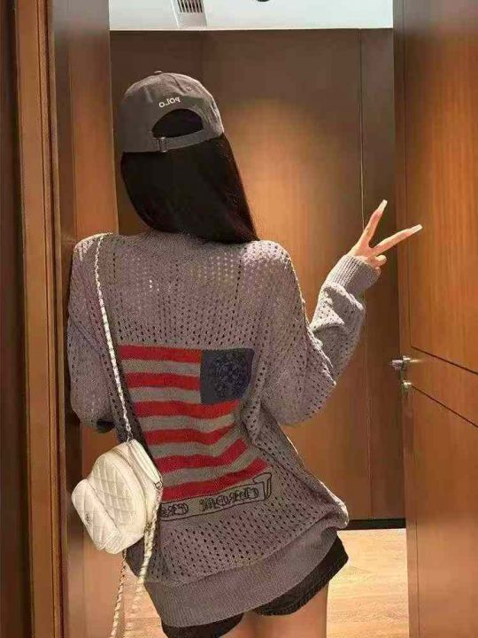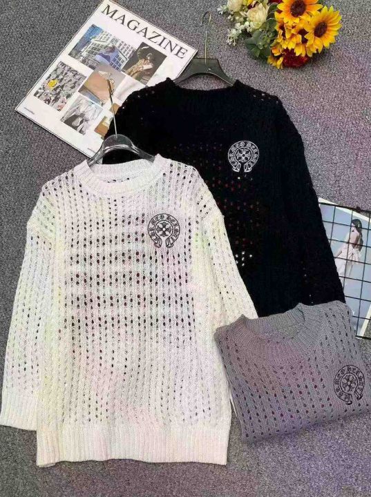 早春季新款宽松潮牌圆领镂空设计款长袖针织衫,独立包...