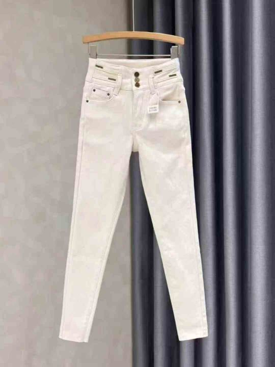 7.9清65件奶白色高腰小脚牛仔裤女秋冬季新款弹力显瘦减龄百搭紧身铅笔裤长...