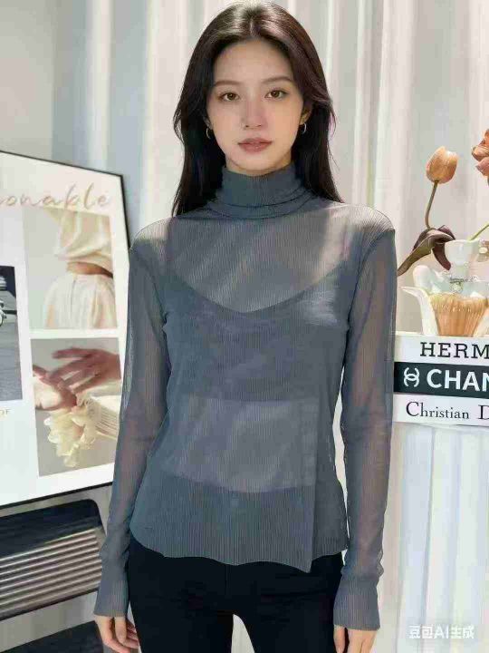 285件网纱透视打底衫女纯欲高领性感蕾丝长袖t恤内搭纱衣上衣,高弹力质量好零瑕疵,尺码S-3XL,独立拉链包装,全清4.9