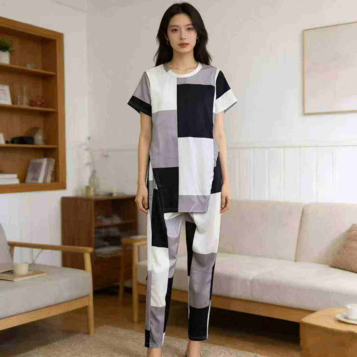 ① 慵懒风黑白格居家两件套!独立包装,码数S-XL,数量130套左右,全清5.8...