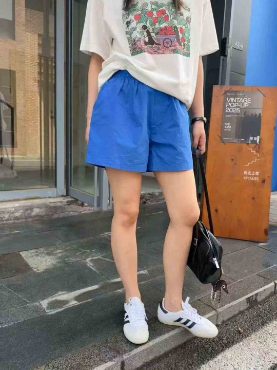 秒杀价:3.9蓝色短裤女夏季新薄款美式松紧腰运动A字休闲裤、独立包装、带内...