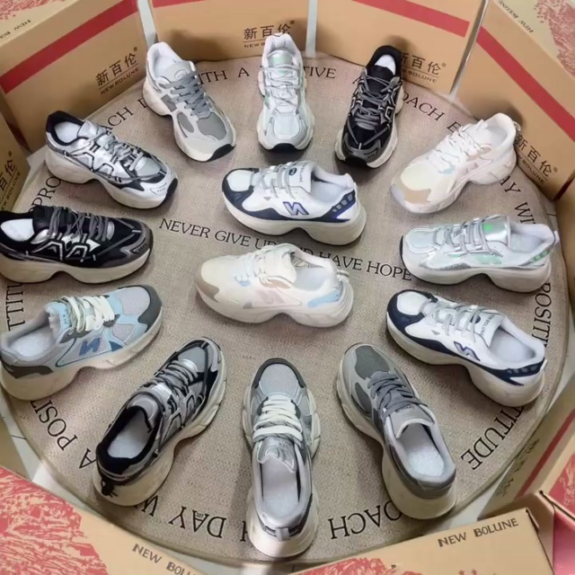 最新款新百伦网面女老爹30双一件 新百伦原包装盒前后鞋撑 穿鞋带部分一首码...