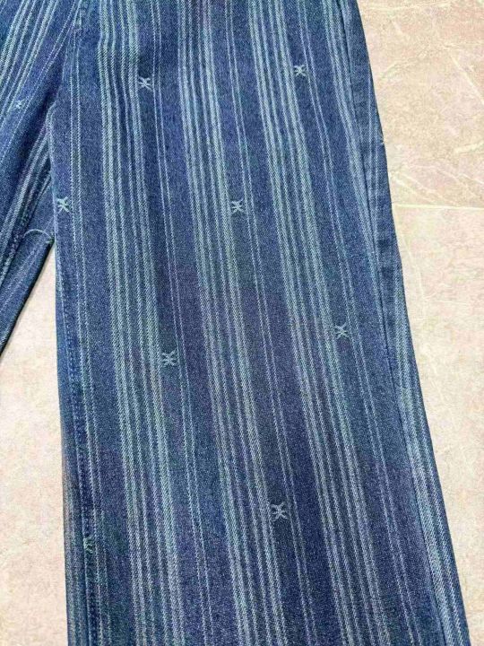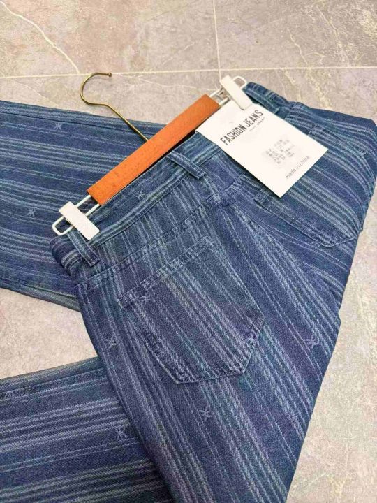 欧美风ins条纹牛仔裤女高腰显瘦阔腿设计感宽松直筒拖地裤,独立包装,S -xL码,190件左右。全清12.8块
