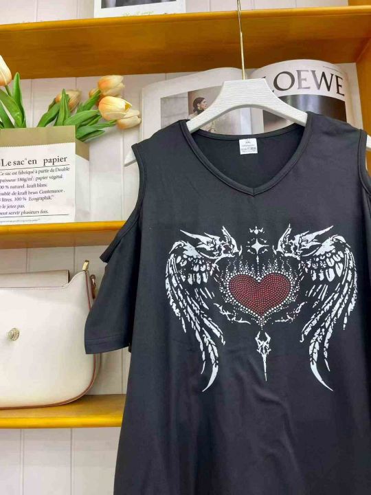 ① 夏季新款爱心翅膀露肩T恤辣妹风上衣!独立包装,码数M-2Xl,数量130件左右,全清4.5元