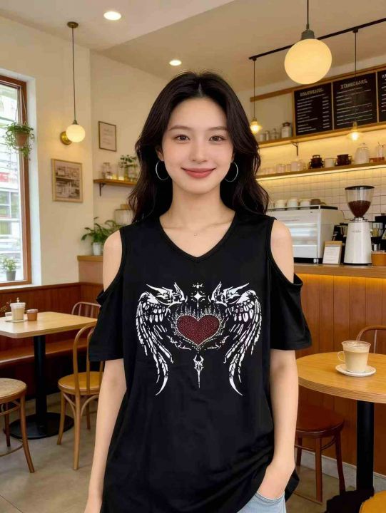 ① 夏季新款爱心翅膀露肩T恤辣妹风上衣!独立包装,码...