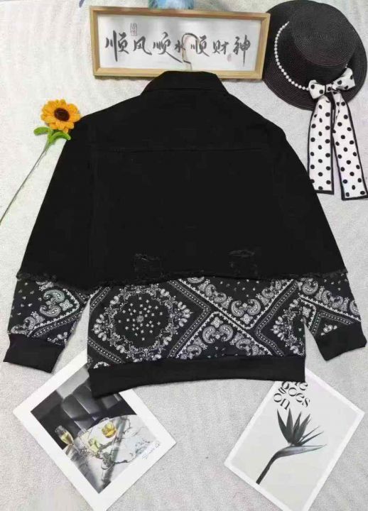 数量40件左右,均码(100-130斤),操心宽松,纯棉牛仔面料,拼接腰果花设计款,全部独立包装+原吊牌