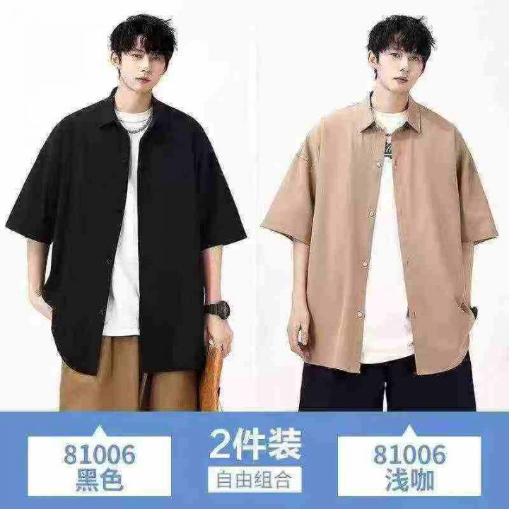 日系夏季短袖衬衫男装纯色宽松大码衬衣,全清秒杀:6....