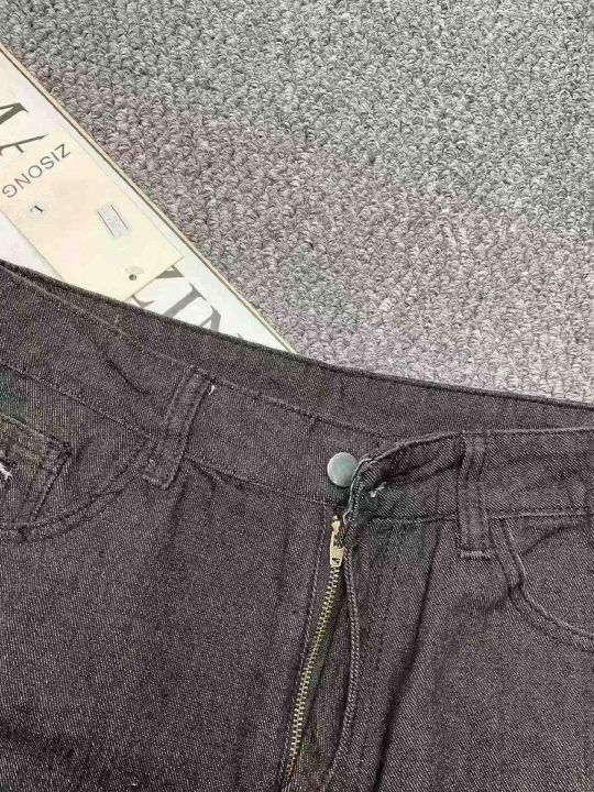 春夏季新款复古美式宽松大码女装破洞设计款牛仔老爹哈...