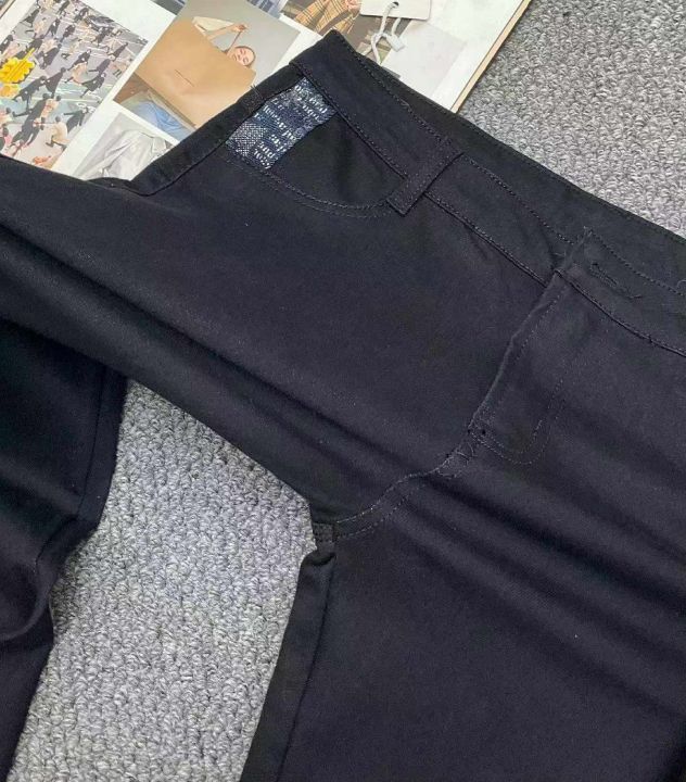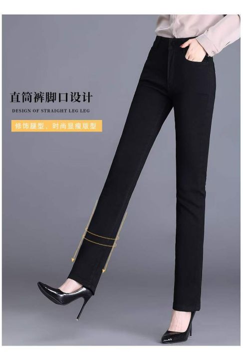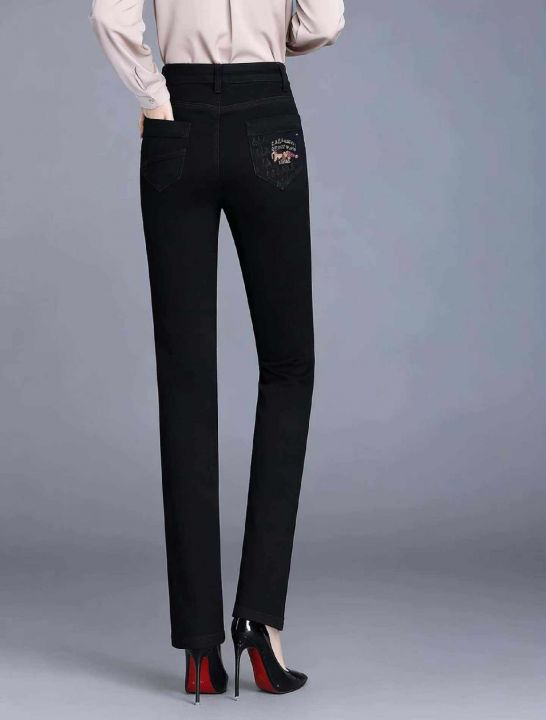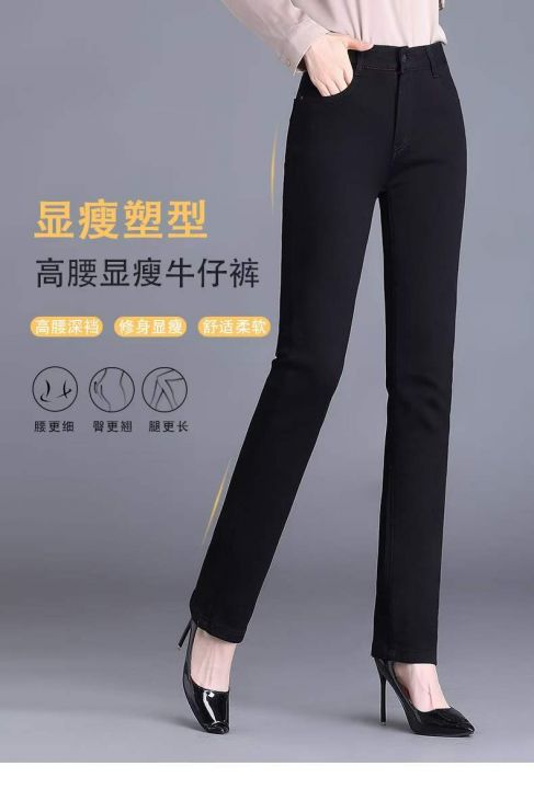 春夏季新高腰高弹力网红复古洗水棉妈妈牛仔直筒裤,独...