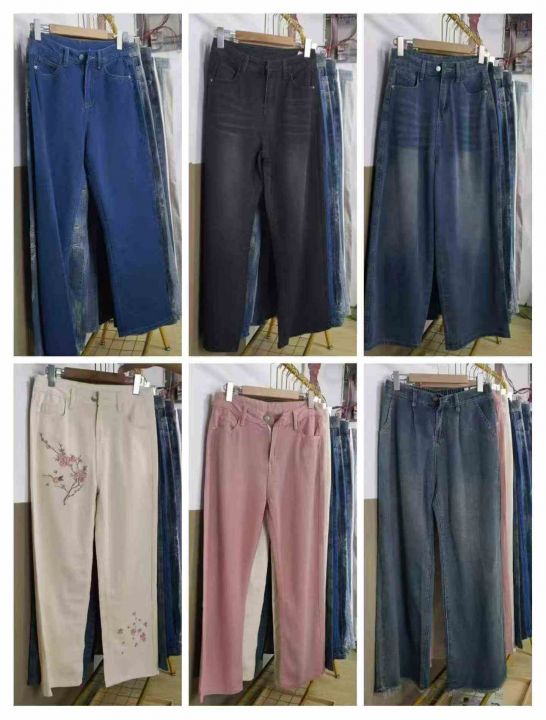 #Lady jeans wholesale外贸单女士宽腿直筒阔腿小整杂...