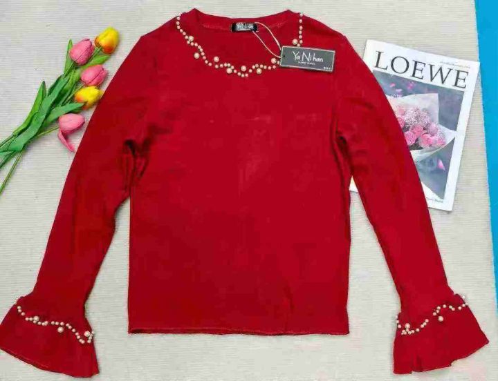 法式名媛风喇叭袖钉珠打底衫,130件,1-4码,独立包装吊牌,全清4.8元