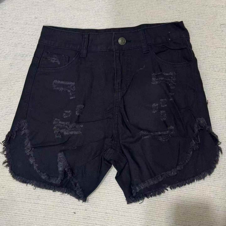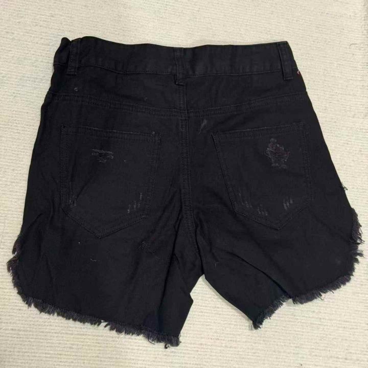 以纯正品剪标款女装中腰黑色牛仔短裤侧边高开叉辣妹毛边破洞