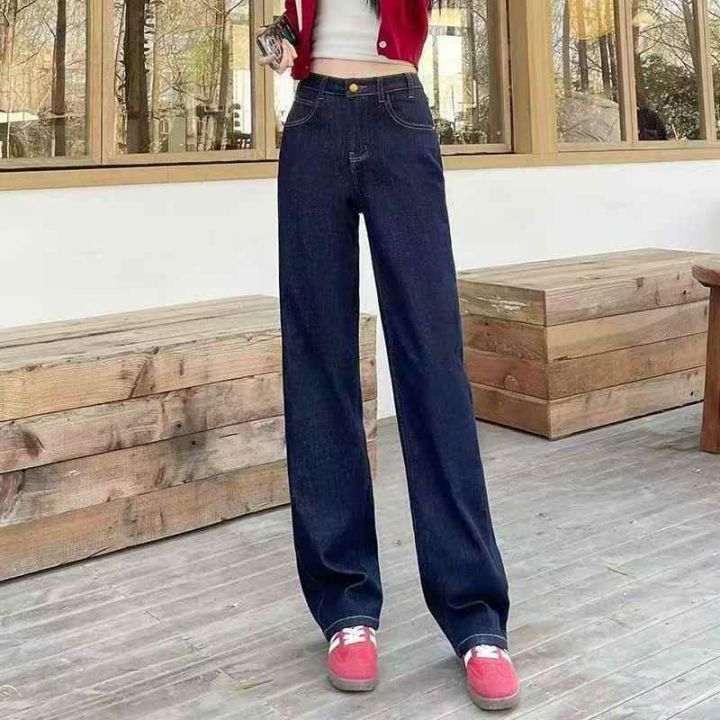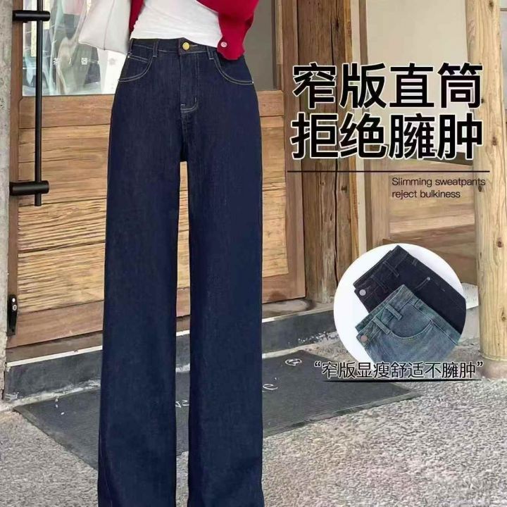 新款宽松百搭显瘦高腰窄版女款直筒裤子,整款两色(杏...