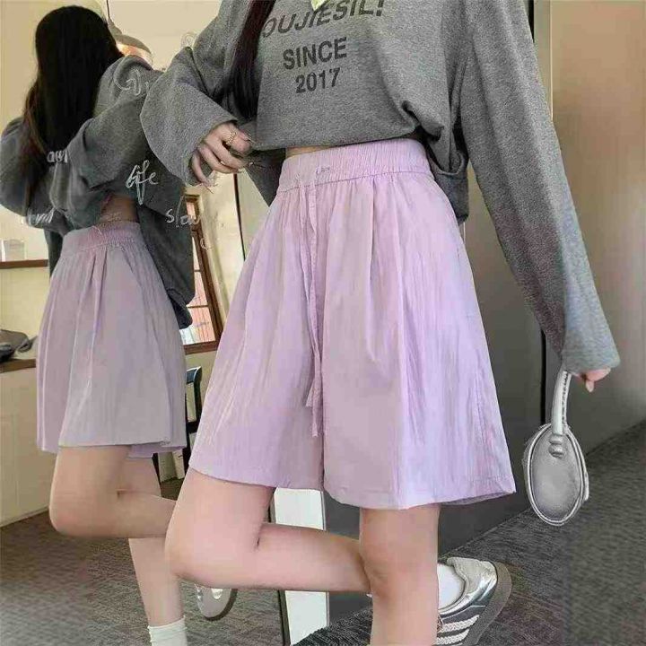 新款冰丝山本休闲短裤女夏季薄款韩版高腰运动直筒阔腿...