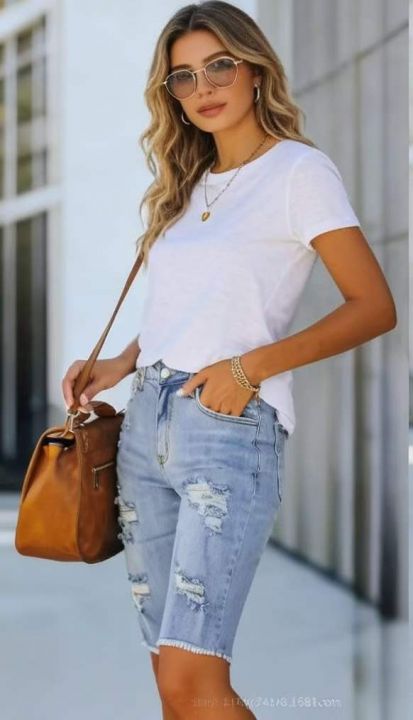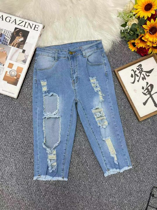 夏季品牌外贸原单美式宽松弹力复古破洞牛仔中裤,独立包装,码数S-2XL码(S码多), 300件左右, 全清5.9元超低价秒杀!