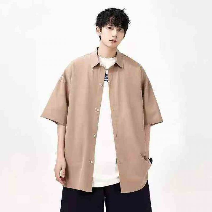 日系夏季短袖衬衫男装纯色宽松大码衬衣,全清秒杀:6....