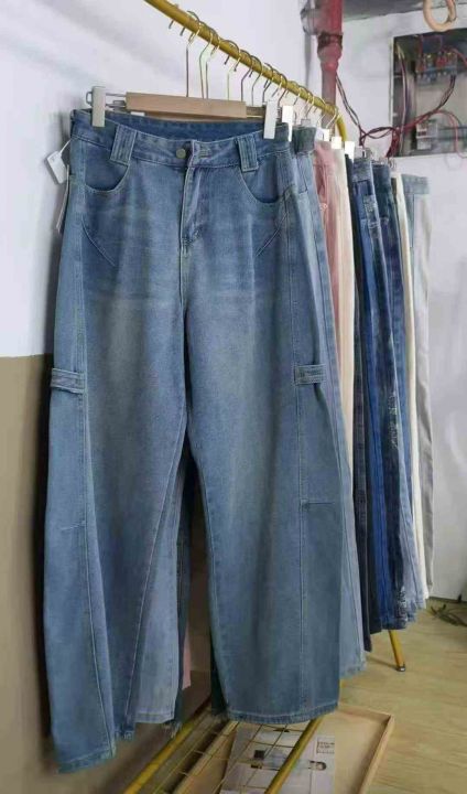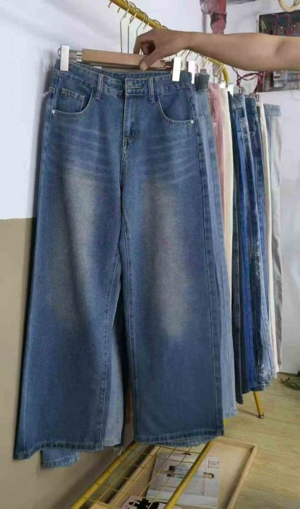 #Lady jeans wholesale外贸单女士宽腿直筒阔腿小整杂...