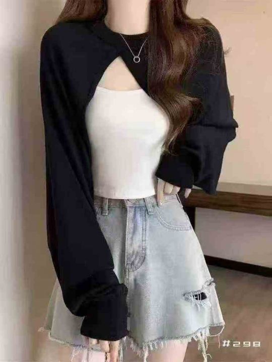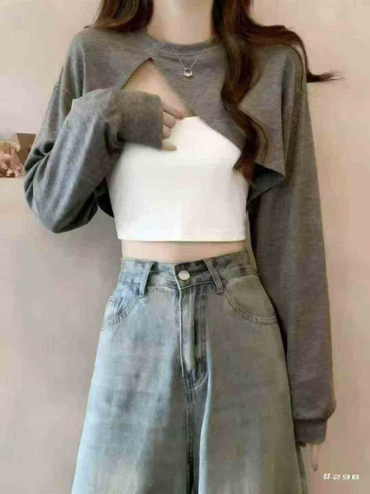 6.9清电商仓回收3061套跨境热卖辣妹休闲简约吊带长袖女士套装两件套,码数S...