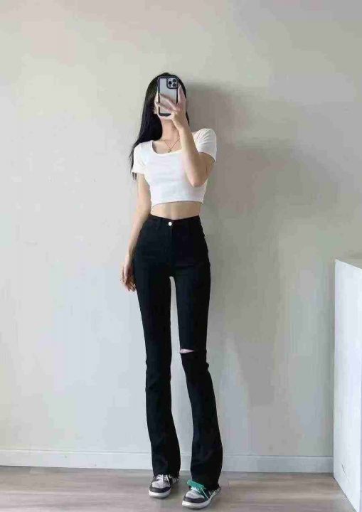 万佳档口下架260件左右高品质春秋款美式复古毛边设计高腰显瘦喇叭拖地牛仔裤,S-XL,带防盗扣,实体店️入品质,独立包装带吊牌