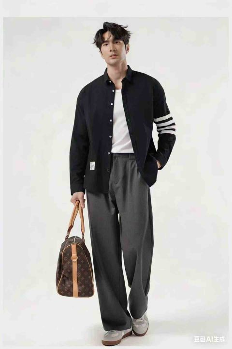 潮牌春秋季新款四条纹宽松衬衫男女情侣衬衫长袖,650件 码数:M-3XL (1点到5点)独立包装,分货➕1 (货号305#1)