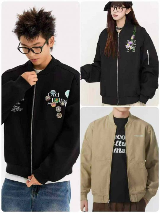 电商仓回收4500件潮牌男装夹克飞行员棒球服外套,码数S-5XL。很多都是ab面印花。版型面料款式也非常不错,独立包装,分货➕1