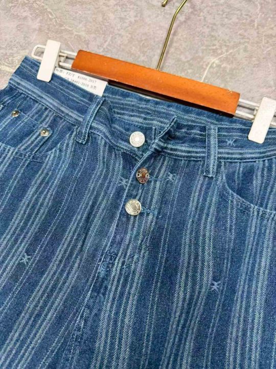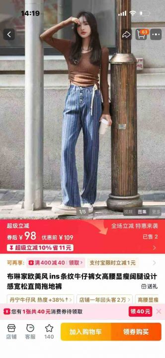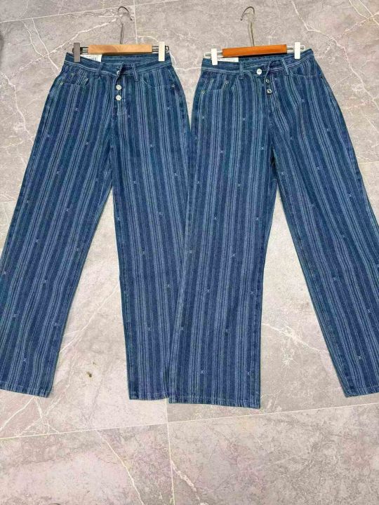 欧美风ins条纹牛仔裤女高腰显瘦阔腿设计感宽松直筒拖地裤,独立包装,S -xL码,190件左右。全清12.8块