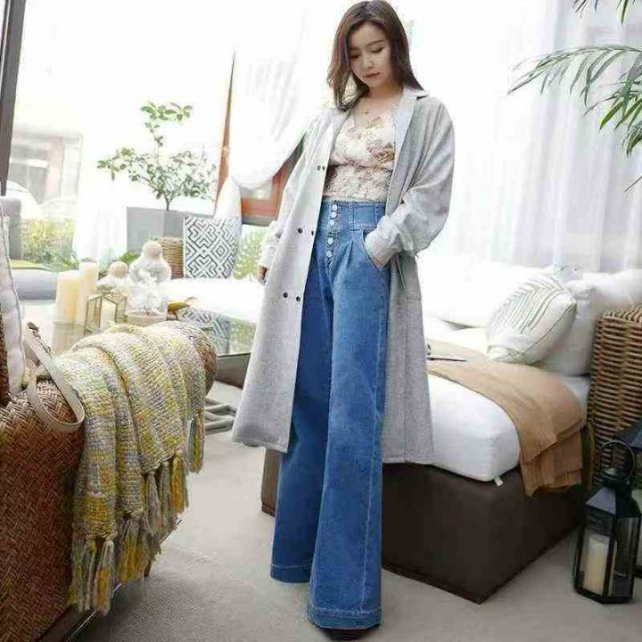纽扣阔腿牛仔裤女款 107件,全清10.8元,正品独立包装,每件有吊牌,码数:28-38(S到3XL),牛仔阔腿裤女春秋新款宽松显瘦大喇叭直筒复古牛仔长裤水洗