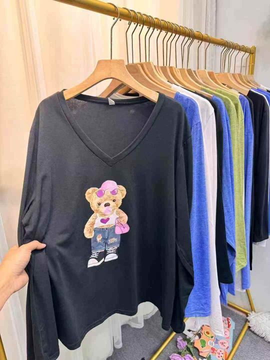 3000件,大码女装胖MM秋季V领上衣女长袖,显瘦宽松遮肚子上衣T恤潮,独立包装\'码数S-5XL,分货➕1,货号001#30