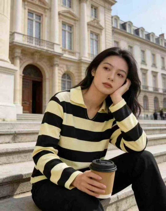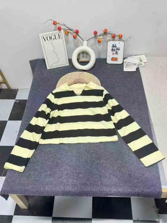 150件左右\'爆款秋季百搭休闲POLO领条纹宽松女新款慵懒风上衣,码数smlxl,独立包装,,货号001#31
