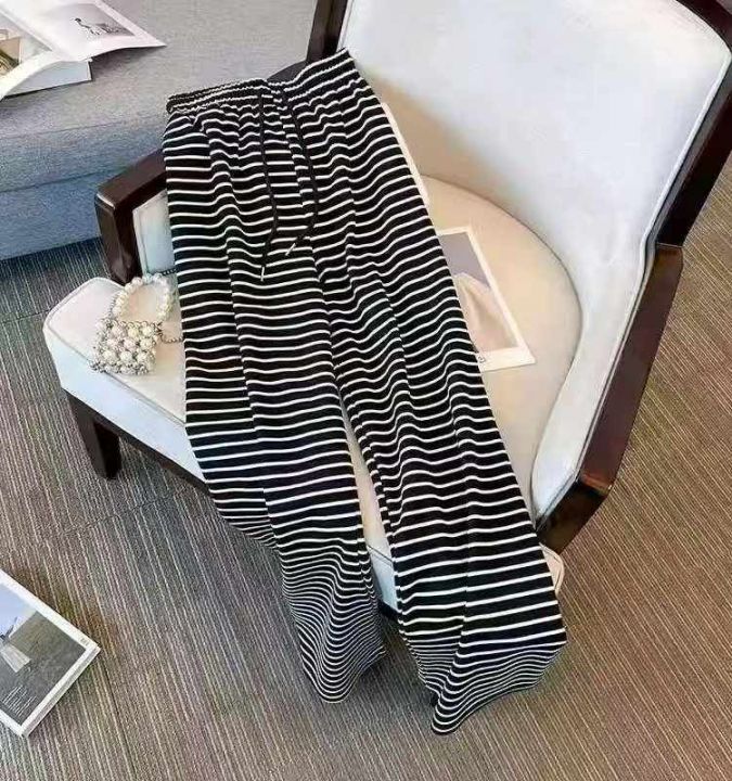 ☕️1200条全清9.5元,夏季休闲裤新款慵懒风宽松直筒高腰阔腿条纹裤子女拖地长裤,分货100件打包9.9元 ,均码 黑色 白色 冰丝面料 ,独立包装