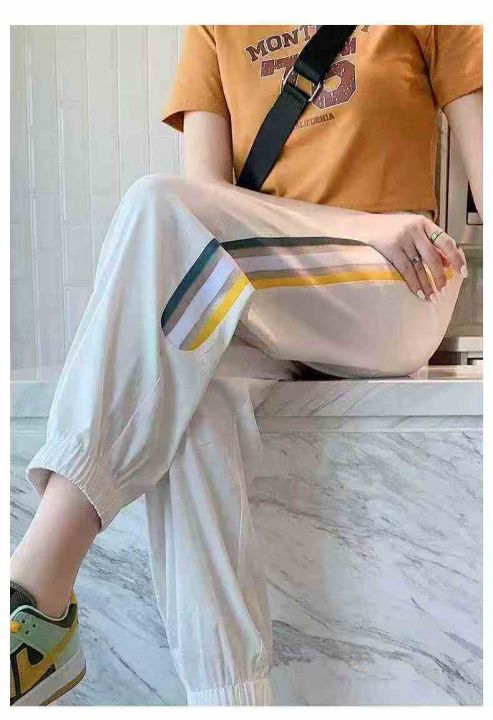 运动裤女夏季薄款2026新款时尚洋气侧边条纹抽绳束脚休闲裤 数量:682条 码数:1-7码 分货➕1独立包装(货号331#69)