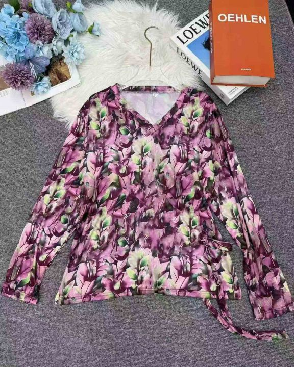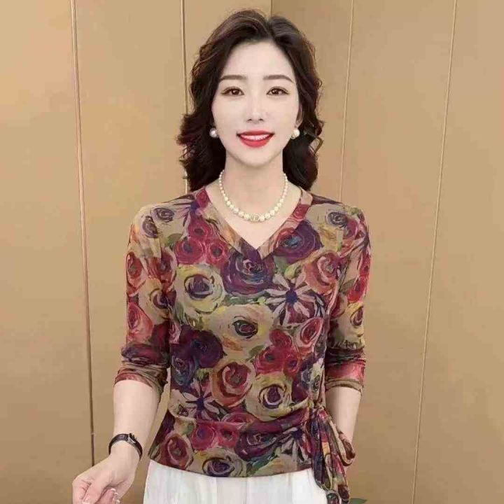 早秋新款时尚V领系带收腰设计洋气妈妈装气质百搭长袖打底衫 数量:430件 码数:1-7码,大货黑色为主 独立包装(货号331#68)