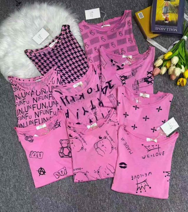 3500件夏天必备面膜冰丝面料短袖印花居家T恤上衣,独立包装原吊牌,面料冰爽吸汗透气,印花图案丰富,基本图片款,两色均码有弹力,后领包边,全清价3.9元,分货加1