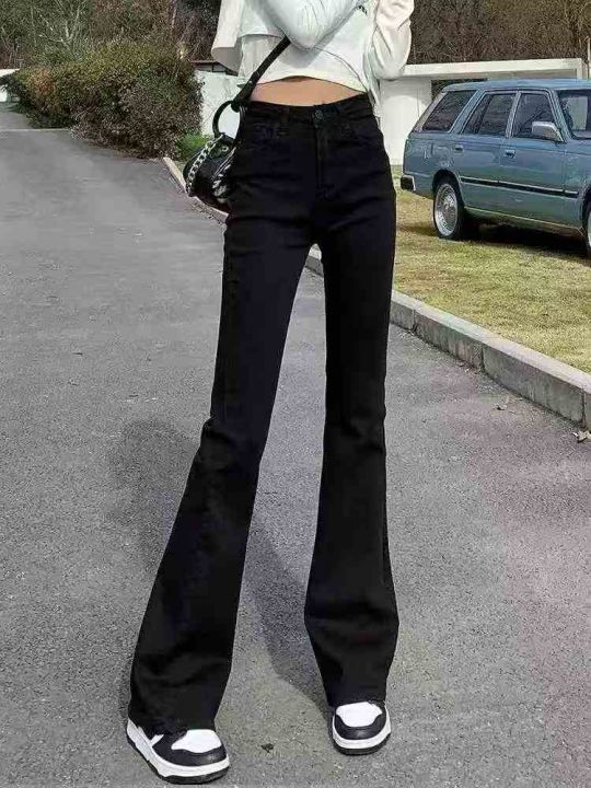 黑色微喇牛仔裤春季新款高腰显瘦喇叭裤修身拖地马蹄裤...