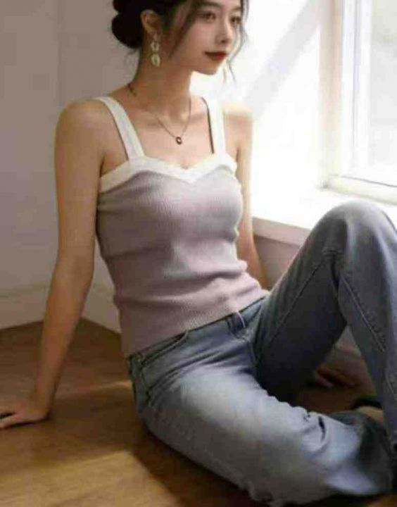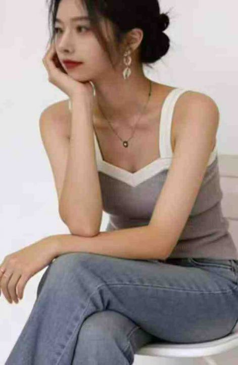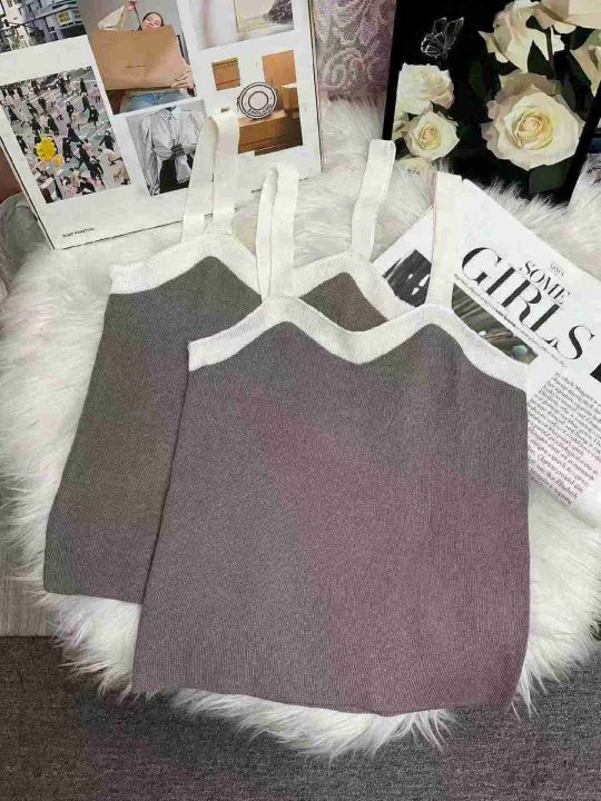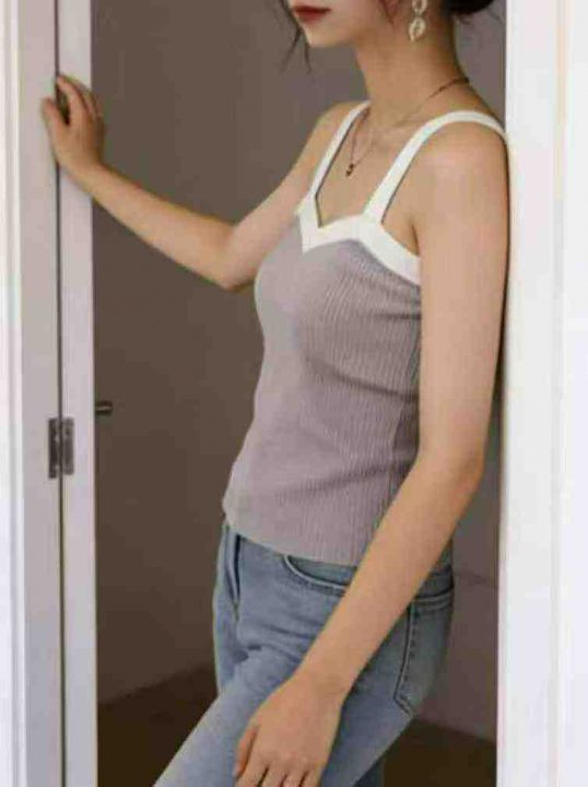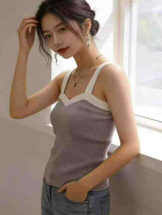 夏季新款设计感撞色弹力针织吊带,独立包装,均码面料...