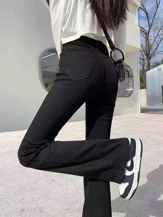 黑色微喇牛仔裤春季新款高腰显瘦喇叭裤修身拖地马蹄裤...