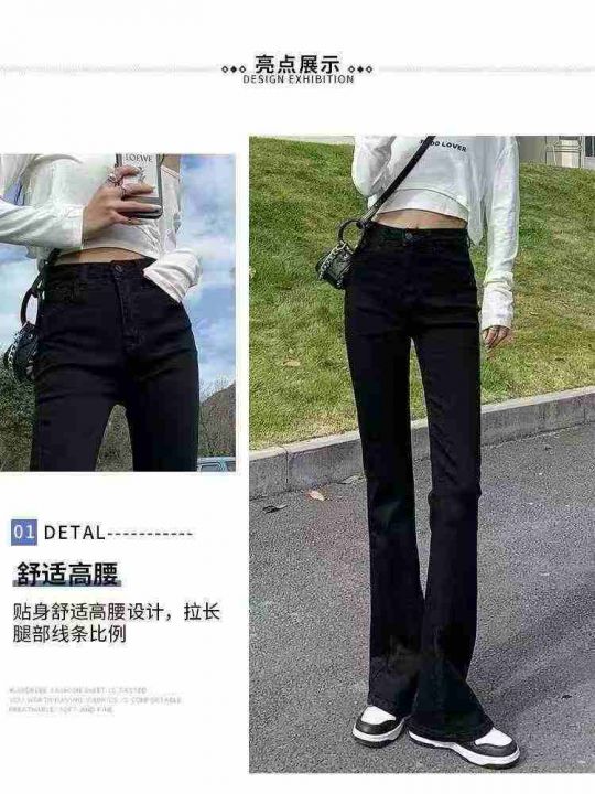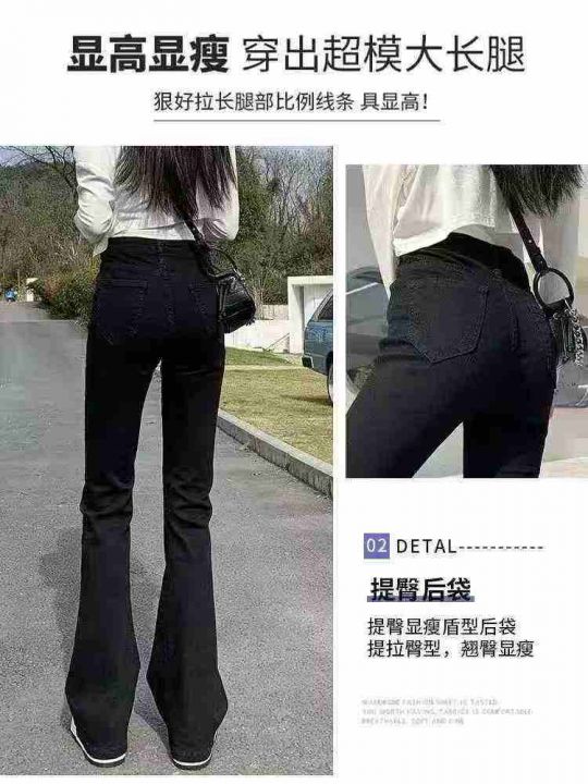 黑色微喇牛仔裤春季新款高腰显瘦喇叭裤修身拖地马蹄裤...