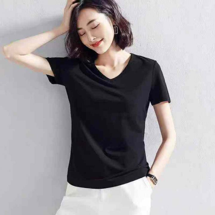 电商仓回收557件黑色纯棉显瘦复古辣妹V领T恤,码数M-3XL。面料柔软舒适有弹力,带纸板独立包装,分货➕0.5。
