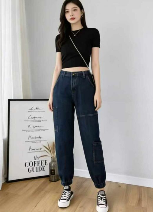 春季新款品牌原单复古蓝洗水棉多袋工装牛仔束脚裤,独...