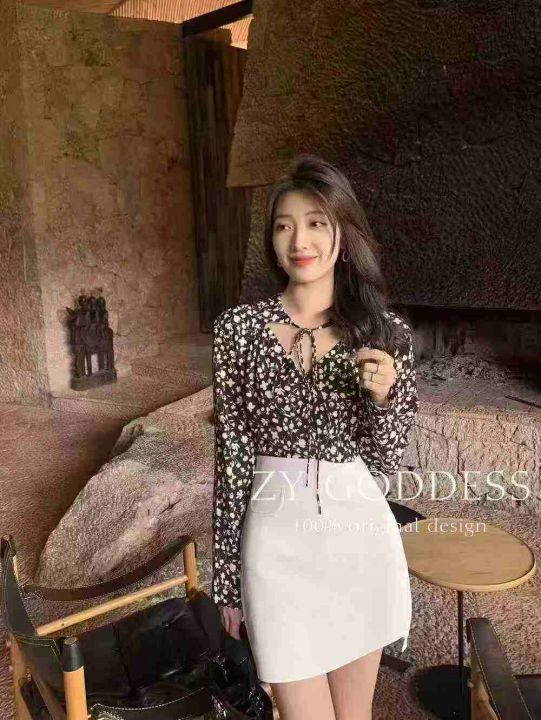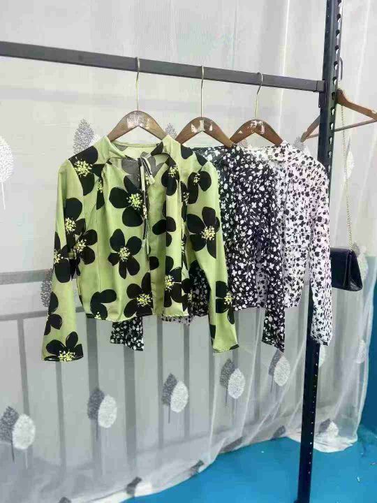 新款韩式V领碎花长袖衬衫128件,单款3个花色,均码,独立包装,全清6.8