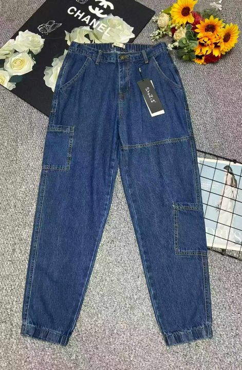 春季新款品牌原单复古蓝洗水棉多袋工装牛仔束脚裤,独...