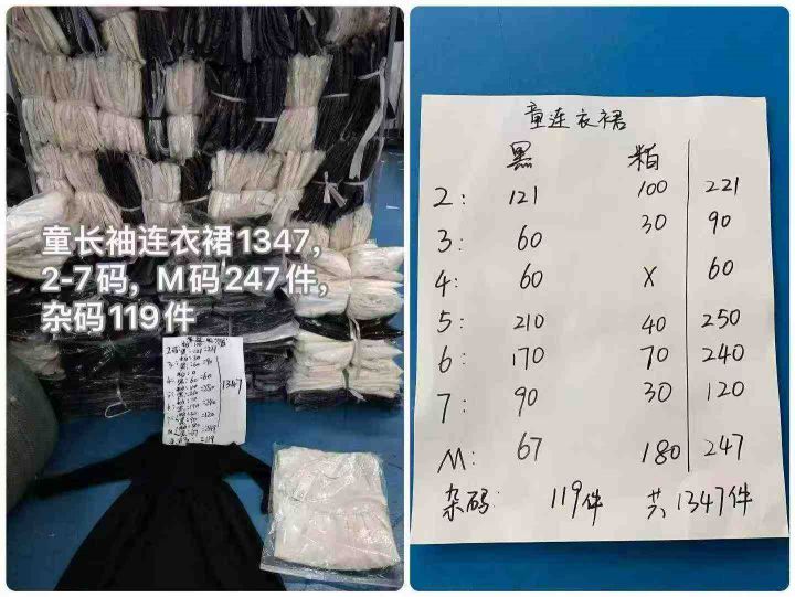 童装长袖连衣裙1347件5.9,面料舒适,拼接设计,码数2...