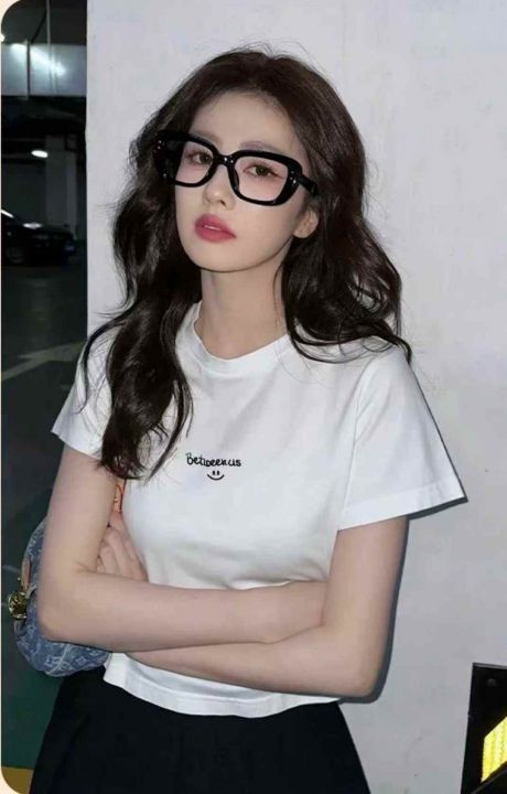 全清价6.8螺纹短袖t恤女夏时尚刺绣百搭修身辣妹上衣,独立包装,均码,整款...