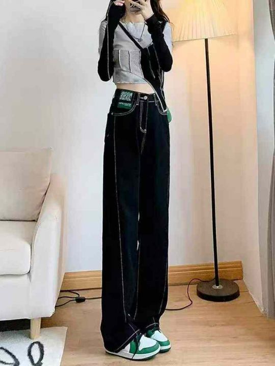 捡漏款,春季新款网红复古微胖MM洗水棉设计款直筒阔腿牛仔裤,独立包装带腰...